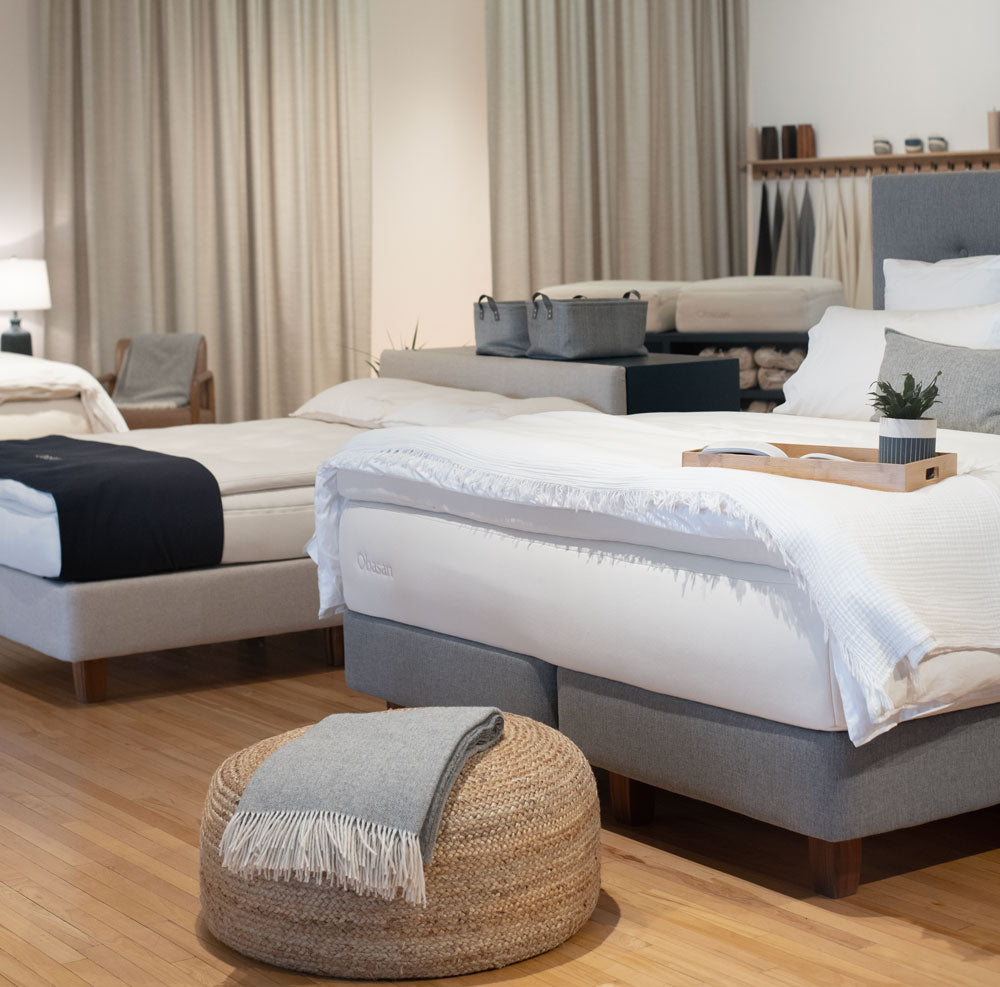 Visit Obasan's Ottawa showroom, where sustainability meets sleep science. Your journey to a customized, rejuvenating sleep experience starts here. Your best sleep awaits!
