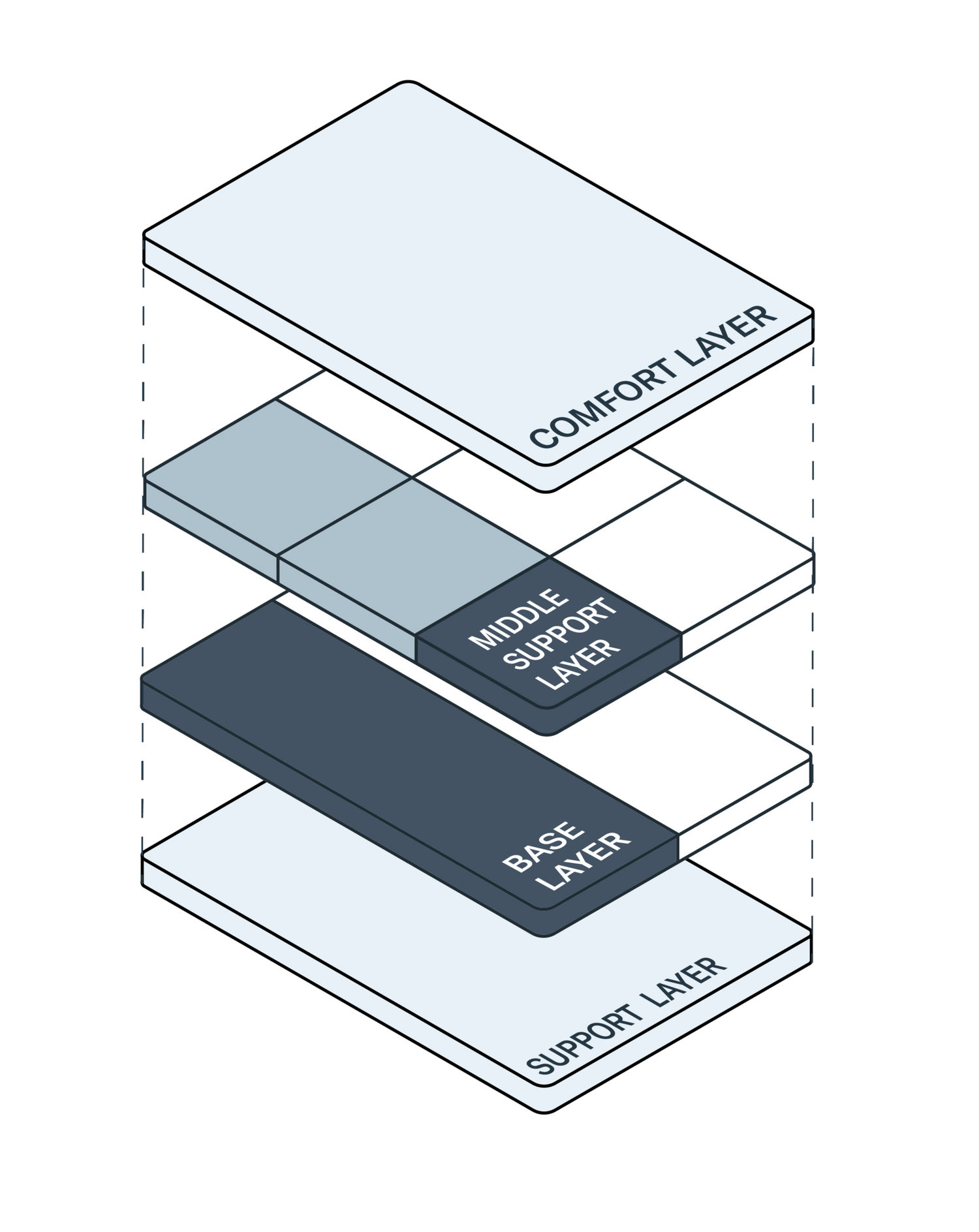 Each side will be custom-made for your body, sleep position & support needs. Uniquely yours. This ensures true comfort for all.